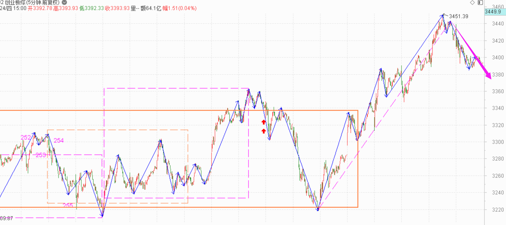 相比上证,深综指数还是乐观些,明天开盘即使回调,只要不跌破3360,依然是五分钟的三买点,同时这个买点大概率与上证的一分钟买点同步,所以明天开盘可以注意一下这个情况。如果深综跌破了3360,然后并没有跳水,那么这里大概率形成五分钟以上级别中枢了,上证估计也是横盘震荡了,到时候按板块和个股操作吧。