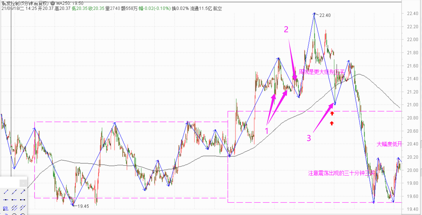 6点:这里两个点,都是五分钟扩展中枢构建完成后,形成的五分钟标准二买点。当时这个点位看到了,但是仓位没安排过来,没参与。