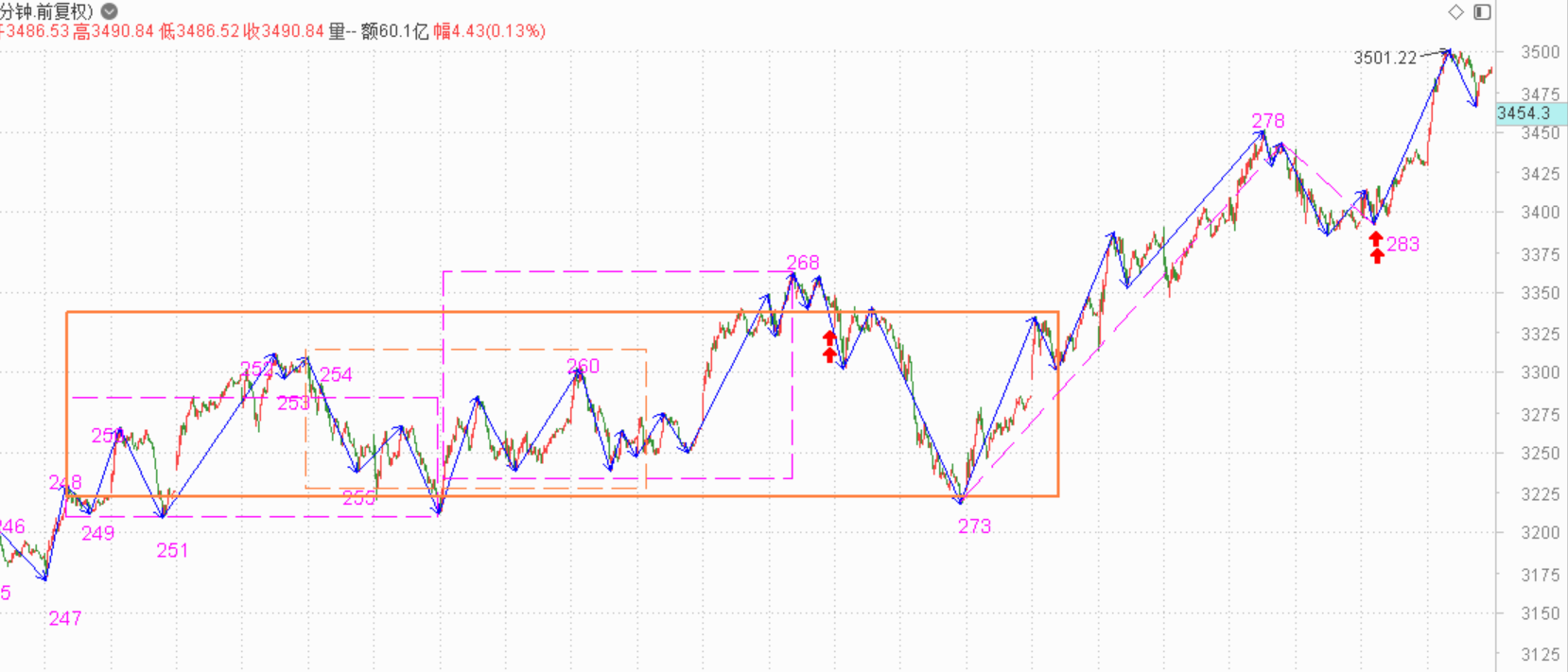 既然是五分钟走势,目前就有两种可能,一个是在当前位置附件形成五分钟中枢,毕竟现在处于前面三十分钟中枢的位置,有大量的短期套牢盘,晃一晃再上是最好的。再一个就是明天直接向上突破,在三十分钟中枢上方形成五分钟中枢,同时还将形成标准五分钟级别的三买,这就是强势行情了,后面过四千问题不大。