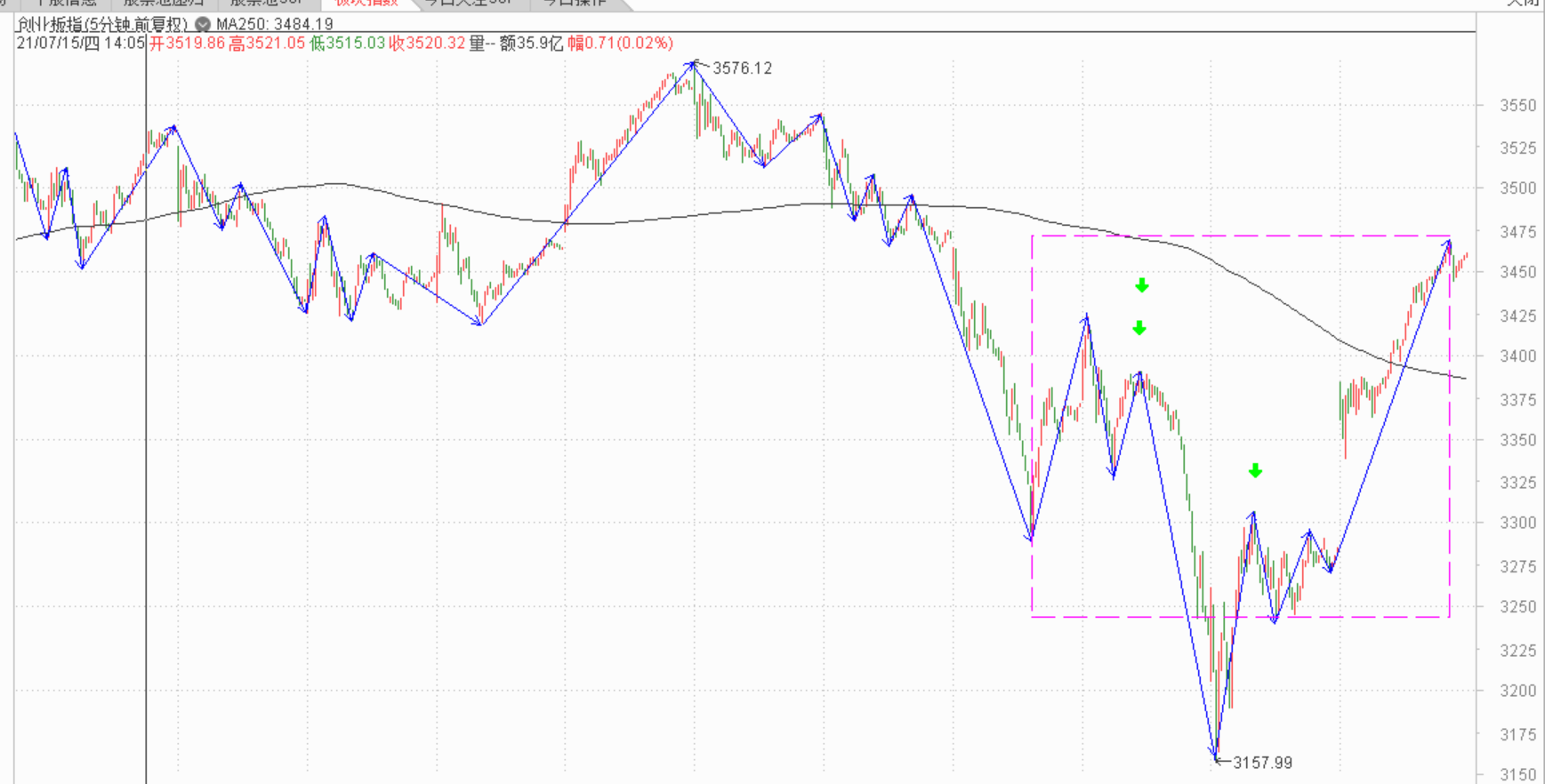 1,只要老老实实的按照买卖点操作,市场总会给以回报,不过买点的稳定性还是要多优化的。市场乐观的时候,不妨多参与扩展的三买,这种往往很暴力,或者是中枢震荡的下沿,幅度越深越好。但是市场不好的时候,就只能参与五分钟和三十分钟中枢完成时的买点了,这种买点一般经过长时间的震荡,比较稳定,相对安全一些。
