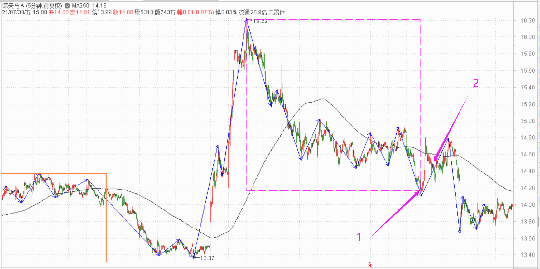 1点:五分钟扩展中枢结束位置,当时不在股票池。