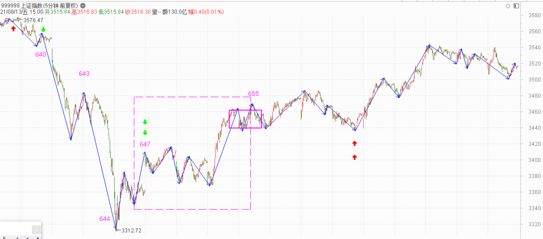 今天上证依然不上不下的震荡,由于今天的反弹回到了上面的一分钟中枢,没有形成三卖,所以还是跌不下去,看了看几个主要的板块,周一可能会向上反弹,所以指数也会拉回到3540附近,如果后面不能继续上的话,那还是要跌下来。