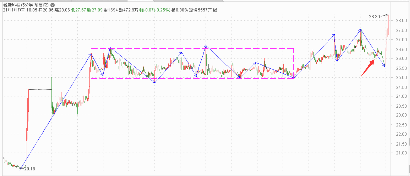 昨天上午抛掉的瑞新科技,下午又接了回来。但是操作上也存在问题,就是当时上证处于中枢上沿的时候接回的,虽然它当时已经跌了不少,但是最终指数砸向中枢下沿的时候,瑞新又跟跌了两三个点。再加上早上操作的问题,浮盈不多,所以截止收盘时,账面是浮亏一个点。