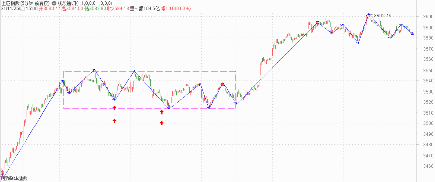 操作原则还是要严格遵循的,一是新高,一是三段,如果两个同时成立,却没能形成三买,一定要放弃,后面如果出现买点再进就是了。