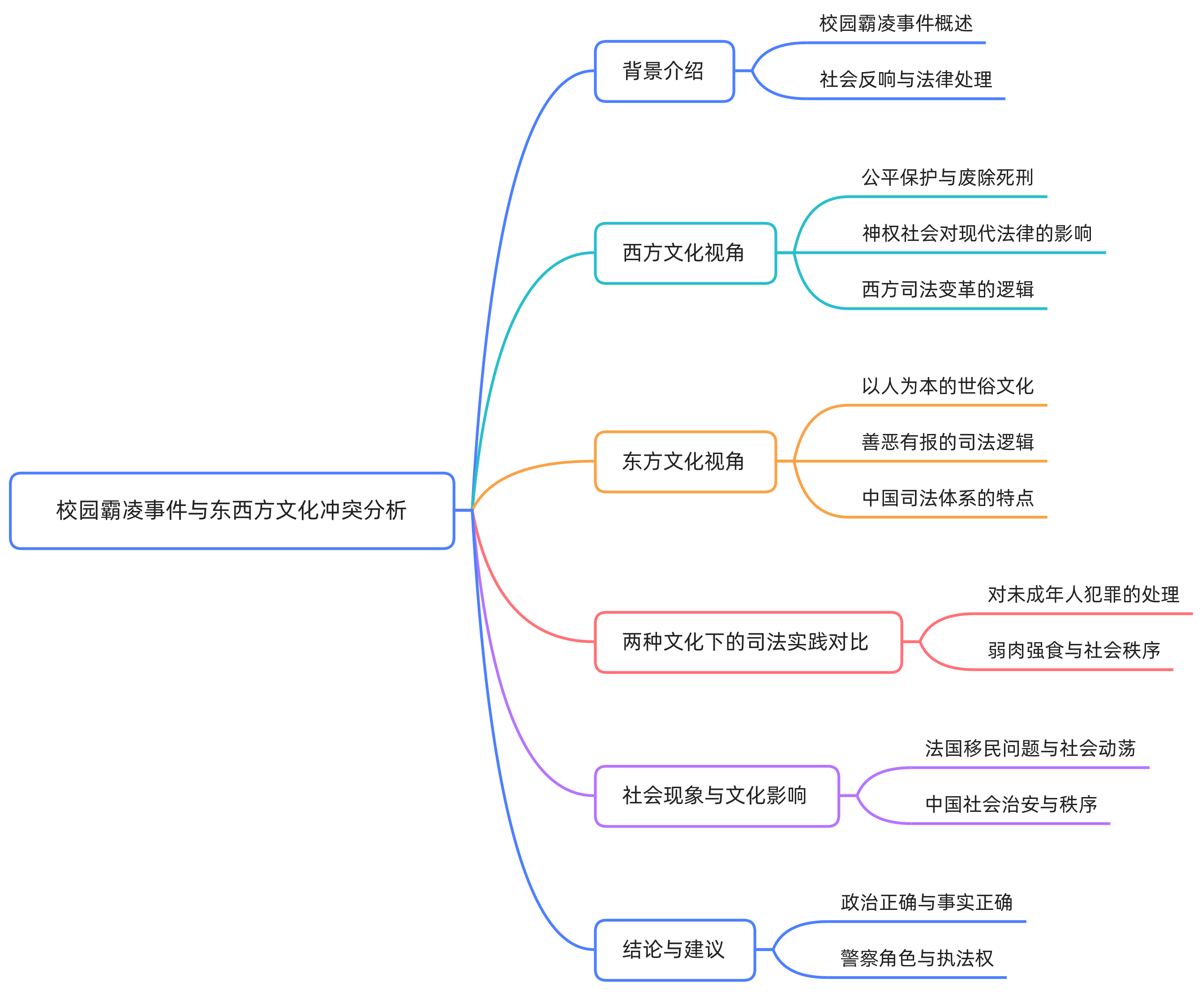 今天从我的视角来聊一聊最近的热点新闻,就是校园霸凌的那三个小混蛋逼迫一个可怜的孩子吃屎。之后,警察处理这件事情的时候采取了和解这种方式。这件事情已经连续的被网友讨论了两三天了,大家都义愤填膺。你要从这件事情本身来说,校园霸凌不对,那三个孩子没家教,然后法律的处理和稀泥,大家都很不高兴,这个是一个客观事实。如果我只是去表达一下愤慨,表达一下我的正义之心,那我觉得可能到现在开始,我就差不多开始要收尾了,这个事儿很快就会讨论结束。所以今天我讨论的方向是我觉得这件事情的背后,其实影射出来的一个东西方基本文化思想的东西,它与文化之间的冲突和对立是有很明显关系的。我们先说西方的那边的东西。