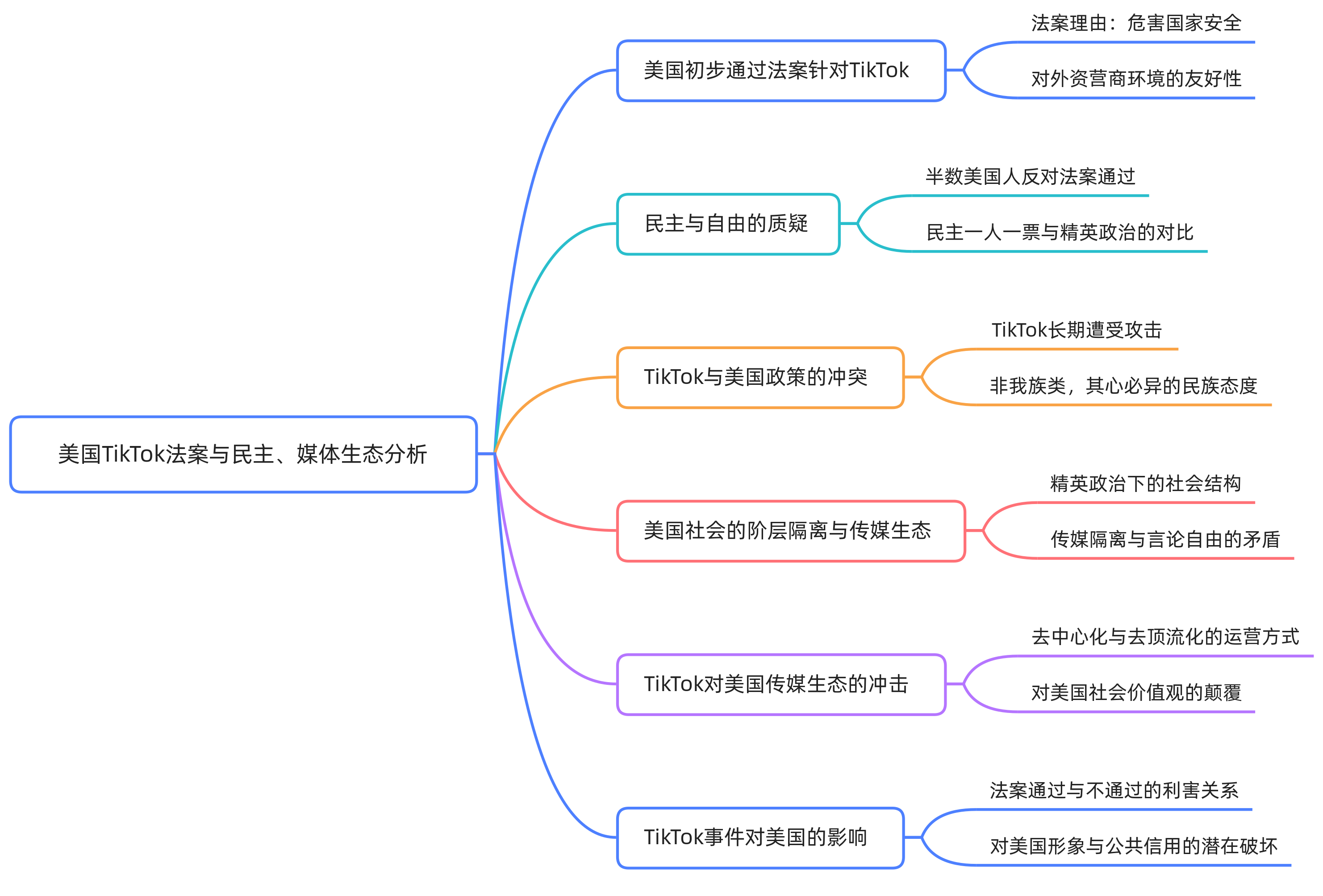 但是为什么要针对tiktok呢?这里面涉及到了几个问题。第一个,咱开头的时候是不是说了,美国是没有真正的民主的,他们是标准的精英政治,半数的美国人第一次不同意收拾这个道了,但是人家国会几十个人投票就可以把这个事落定,谁说话都不好使。精英政治这就是典型的精英政治的表现。他的这种精英政治里面延续了他们古典时期所留下来的那种贵族政治,甚至神权政治、领主政治等等的这方面的遗毒。就是极少数的人说了算,下面的人你听听就完了,跟你没有关系,不要插嘴。在这种情况下,我们其实要考虑一件事情,就是政治生态和人文生态和它整个的社会结构生态一定是高度保持一致的。没有谁家的政体和他的人民结构之间没有关系,他的政体是这样的经营政治,那么它整个的社会结构就不可能是一个完全平等的社会结构。