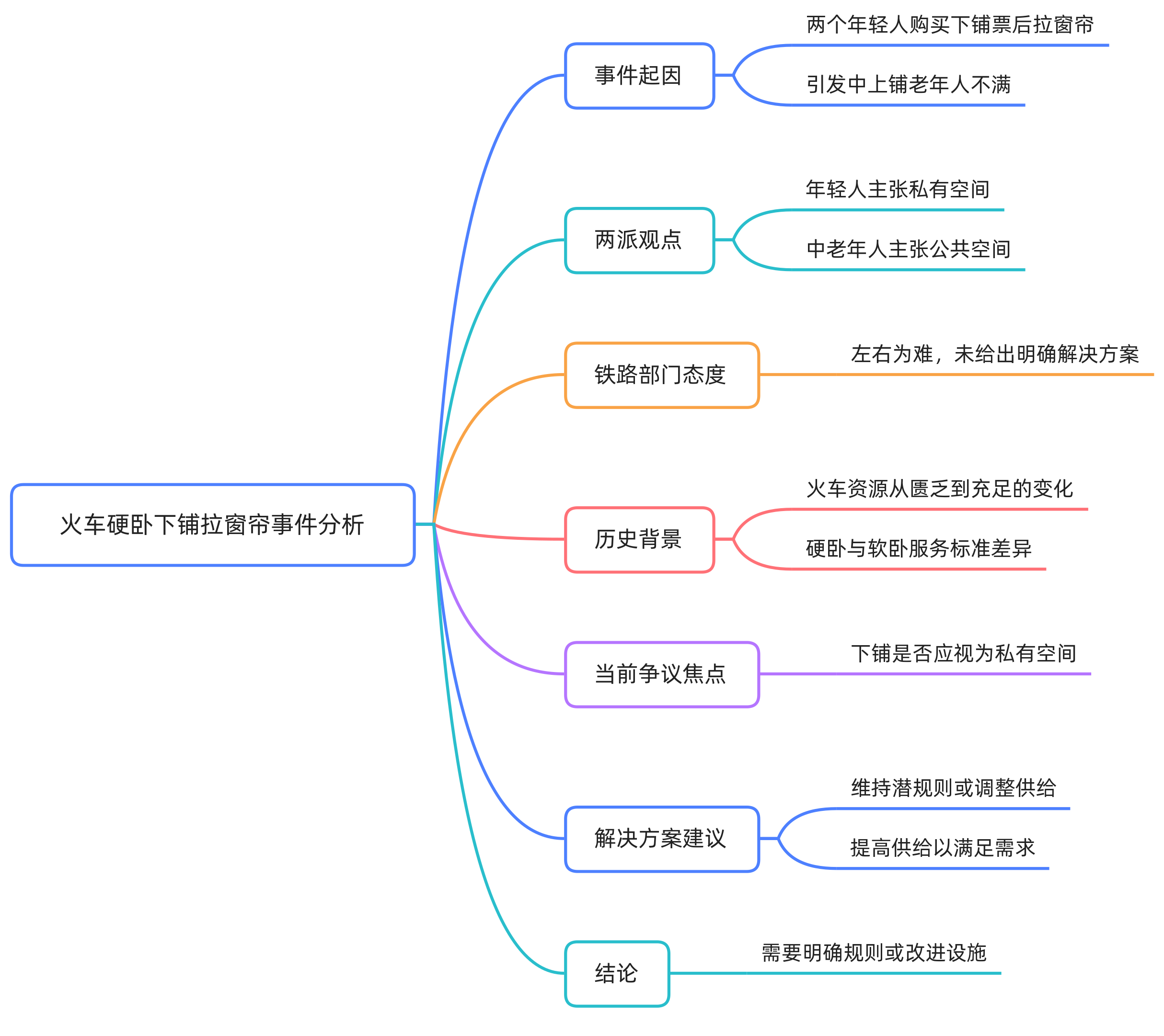 火车的硬卧下铺能不能拉窗帘?这个事居然能够在热搜上面呆这么长的时间,也是出乎了我的意料。所以今天我们来梳理一下相关的事件起因,其实不过就是有两个年轻人在坐火车的硬卧的时候买到了下铺的票,然后呢就扯上窗帘把自己圈起来了,这件事情引发了中上铺的老年人的不满,觉得我到时候白天的时候坐在哪儿呢?里面坐一下都不让人坐,难不成我得站在这里吗?我买一个硬卧的票居然要站半天。