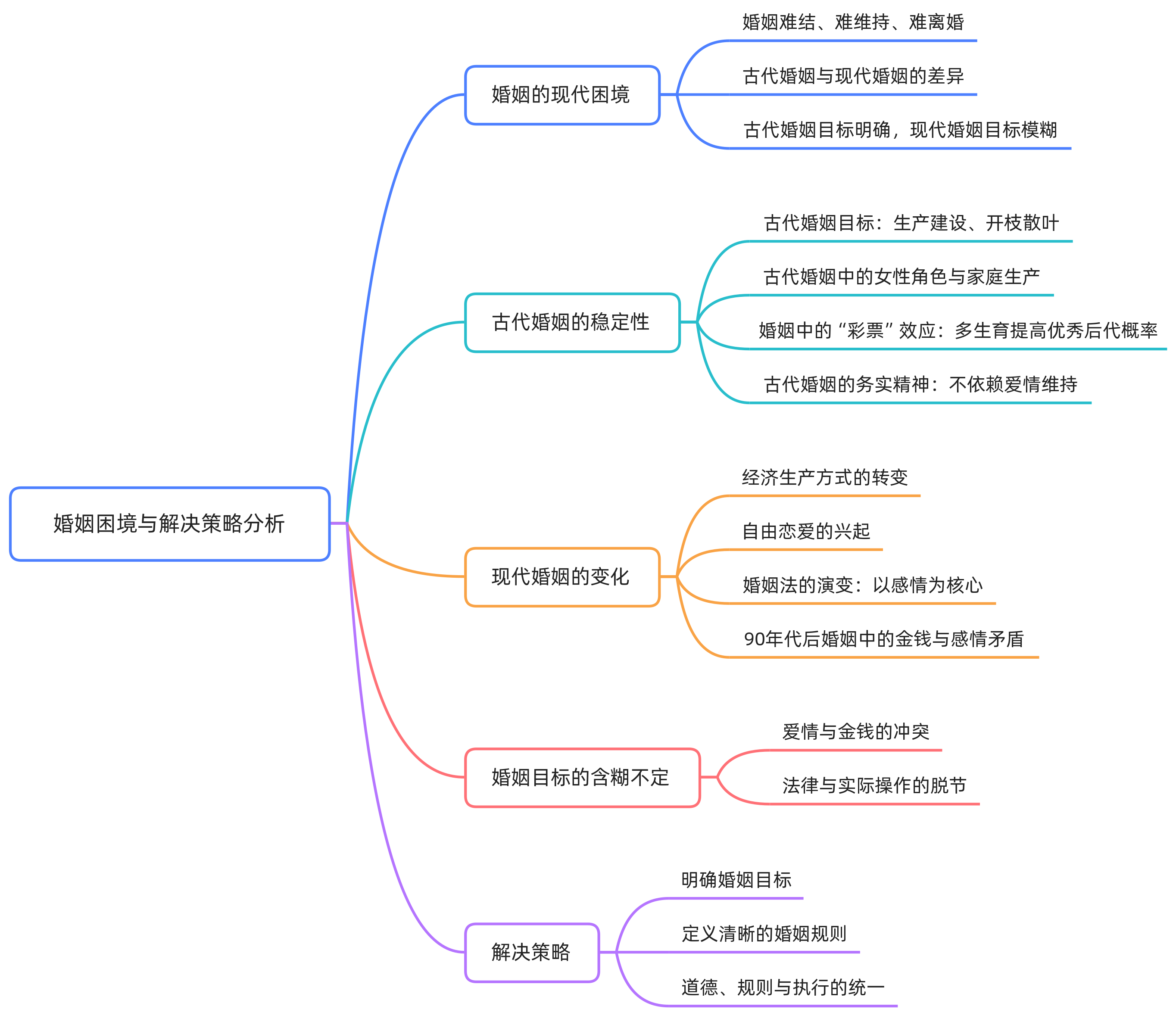 难度出在哪儿?问题出在哪儿?问题就出在我们今天的法律法规,是在你要有感情基础的情况下去谈一个有意点经济分配的婚姻。但是我们在日常的生活当中,很少有人能够在这两者之间达成完美的平衡。我们谈感情的时候分分钟就伤到了钱,而谈钱的时候都谈钱了,你谈什么感情,多余。所以为什么结婚难,维持难,离婚难?一个是我们现在的婚姻目标不明确,另外一个就是我们现在立的这套规矩,这个规矩的目标也不明确,到底我们结婚是为了什么?如果解决不了这个问题,后续的麻烦还会继续来。想要解决结婚和婚姻维系的问题,想要让后面的孩子都能有一个好的家庭,无论是从道德宣发的角度,还是从规则定义的角度,或者是从执行的角度上面,咱们都得先定义清楚咱结婚到底是干啥的?